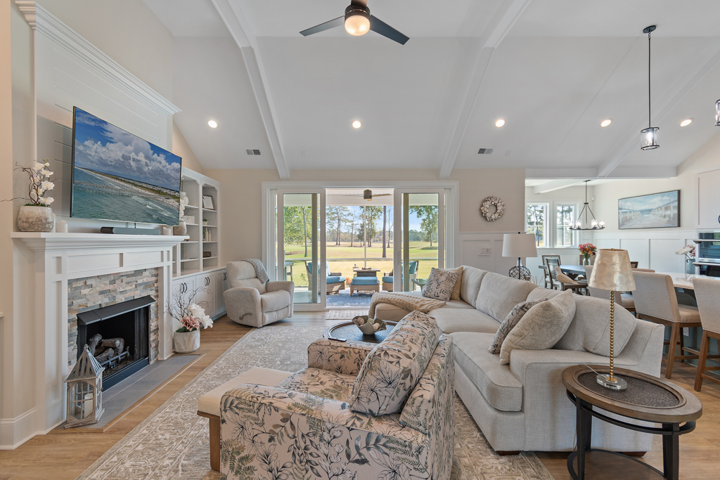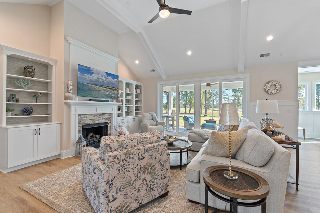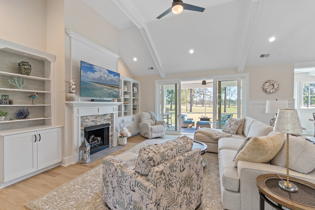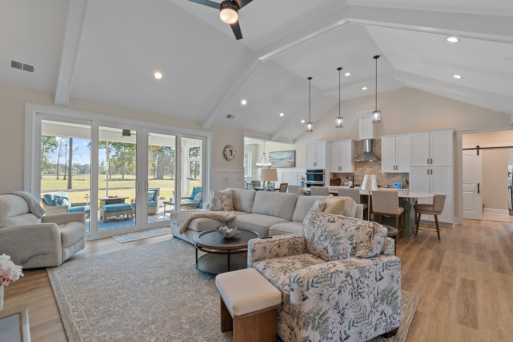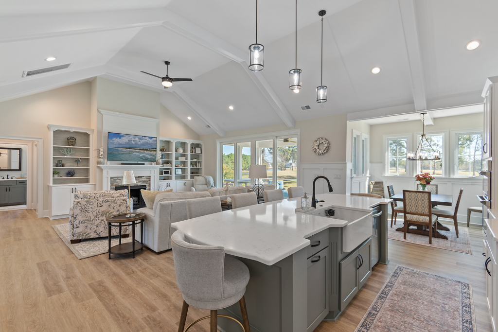 This open and airy home with golf and pond views is ready for a new set of owners! There is literally nothing that needs to be done to this pristine home. The welcoming entry boasts a front door with windows, sidelights and arched transom window, letting in a great amount of natural light. LVP flooring adorns the entire first floor of the home, with tile in the bathrooms and laundry room. The spacious living room boasts built-ins on both sides of the fireplace, faux wood beams on the ceilings and tall 4-panel sliders leading out to the massive, tiled screened porch. If you love to cook or entertain, the kitchen offers plenty of work and storage space with its extended island, plentiful cabinetry and large pantry. Additional features in the kitchen include a farmhouse apron sink, wall oven with convection microwave, gas cooktop, french door refrigerator and vented hood. The dining area adjacent to the kitchen is well sized and convenient.