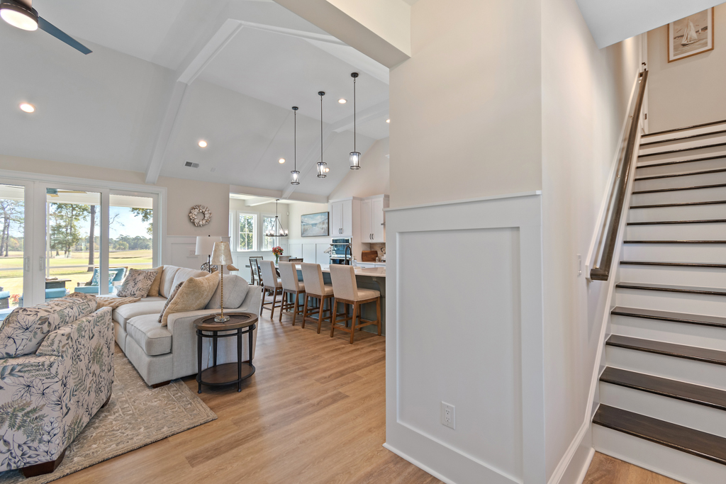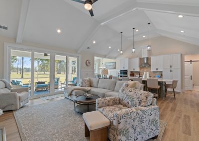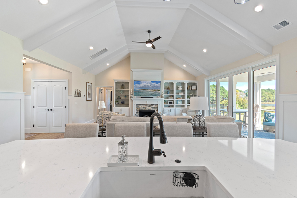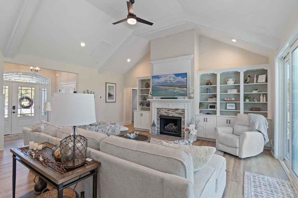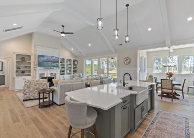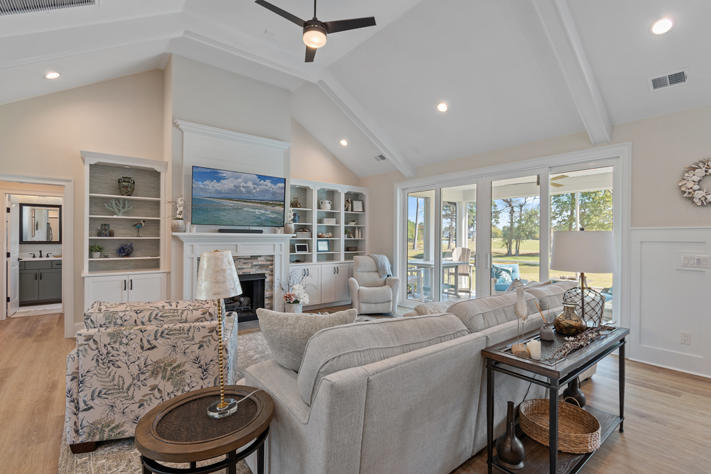 This open and airy home with golf and pond views is ready for a new set of owners! There is literally nothing that needs to be done to this pristine home. The welcoming entry boasts a front door with windows, sidelights and arched transom window, letting in a great amount of natural light. LVP flooring adorns the entire first floor of the home, with tile in the bathrooms and laundry room. The spacious living room boasts built-ins on both sides of the fireplace, faux wood beams on the ceilings and tall 4-panel sliders leading out to the massive, tiled screened porch. If you love to cook or entertain, the kitchen offers plenty of work and storage space with its extended island, plentiful cabinetry and large pantry. Additional features in the kitchen include a farmhouse apron sink, wall oven with convection microwave, gas cooktop, french door refrigerator and vented hood. The dining area adjacent to the kitchen is well sized and convenient.