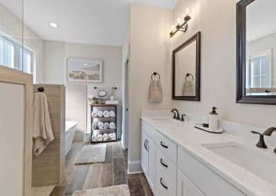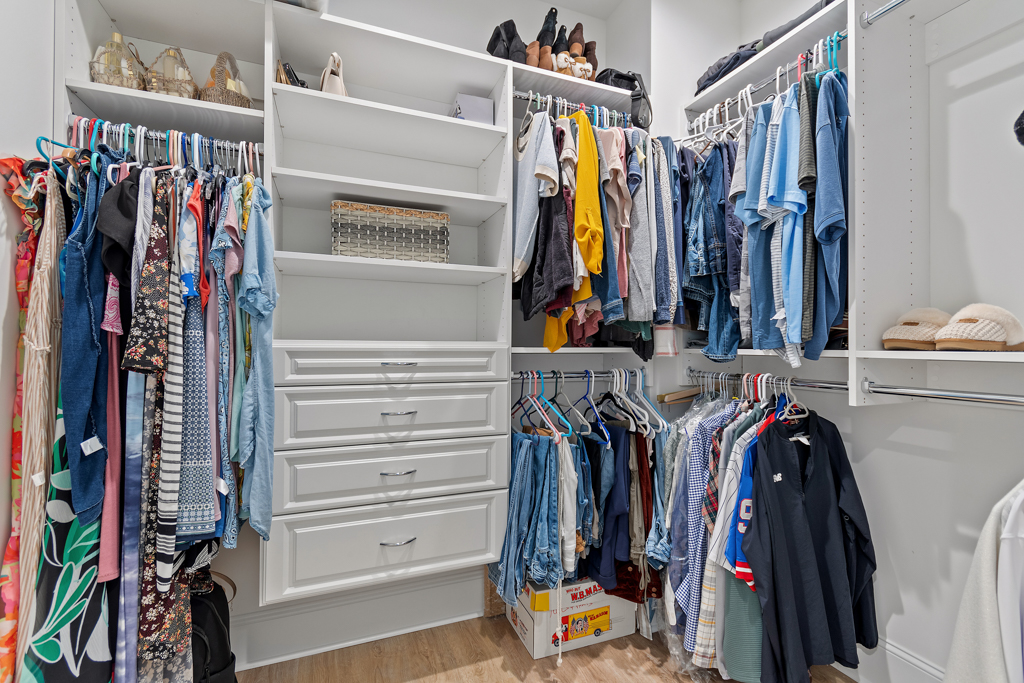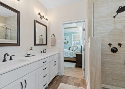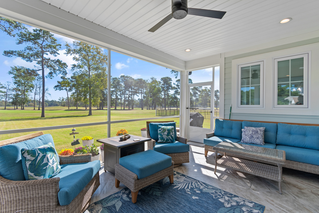 Guests and owners can maintain their privacy with this functional split floor plan. The primary suite is your retreat at the end of the day with a beautiful view, double-tray ceilings with LED rope lighting and a spa-like ensuite. Dual vanities, a generous tiled shower, freestanding tub and water closet with pocket door contribute to the luxurious feel of this space. The primary closet contains a custom closet system with drawers, hanging space and shelving as well. The laundry room is amazing, having been enlarged and rearranged to create a pleasant and functional space, containing a barn door entry, drop zone and storage cubbies. Whether it be a guest suite, exercise room or recreation space, the bonus room with full bathroom can be used however you like. The enlarged garage boasts epoxy flooring, a pedestrian door, storage nook, the tankless water heater and is pre-wired for an electric car charger. Imagine yourself enjoying time on the huge screened porch and extended patio, enjoying the golf and pond views.